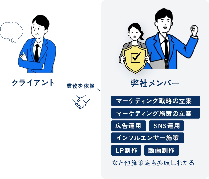 - 大丈夫です。弊社メンバーがマーケティング業務全般をサポートいたします。